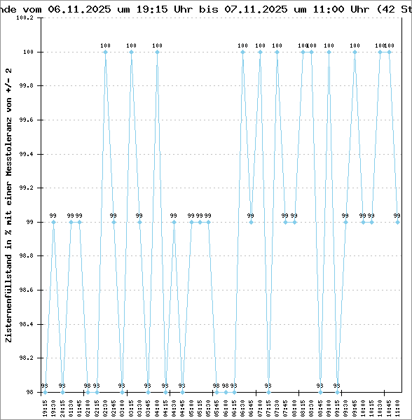 Füllstand der Zisterne: 91% (48-Stunden-Verlauf als Grafik)